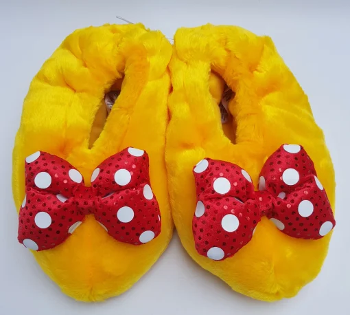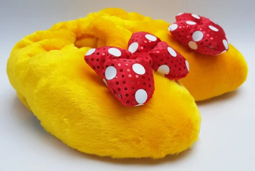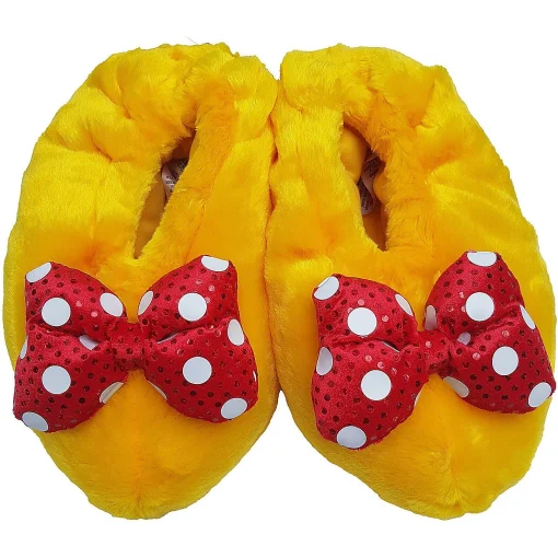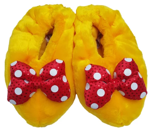 Yoo Hoo! Add a dash of fun to to your everyday essentials with these Minnie Mouse Slippers! Perfect for getting cosy after a day of adventures, the plush slippers feature sculpted detail inspired by her shoes!