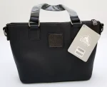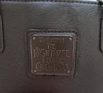- Metal badge on back of bag