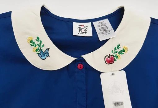 Set out for adventure beyond the seven jewelled hills in this cute Snow White top. Featuring a Peter Pan collar, embroidered flower details, and contrasting button-up front, it adds enchantment to your wardrobe.