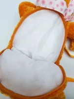 - Plush fur with soft hat and large fabric bow
