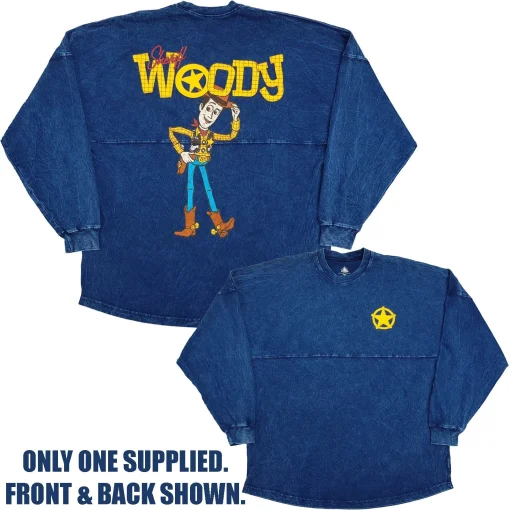 Step lively and say ‘howdy partner’ in this Sheriff Woody of Toy Story Spirit Jersey. Complete with puff print badge, Woody back print and distressed denim style wash, this wild west design will kick-up a corral of compliments!