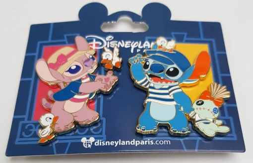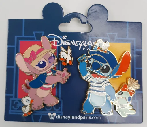 Disneyland Paris Hotel – Stitch & Angel set of 3 pin trading badges.