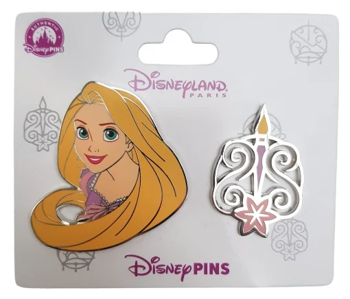 Disneyland Paris Rapunzel pin trading badge set / pair.