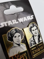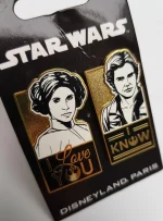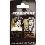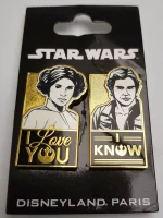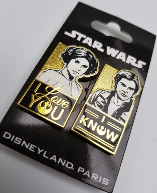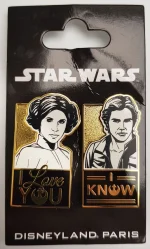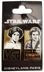 Disneyland Paris Hans Solo & Princess Leia pin trading badges.