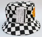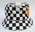 Chequered black and white fabric hat.