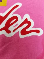 - Bright pink background